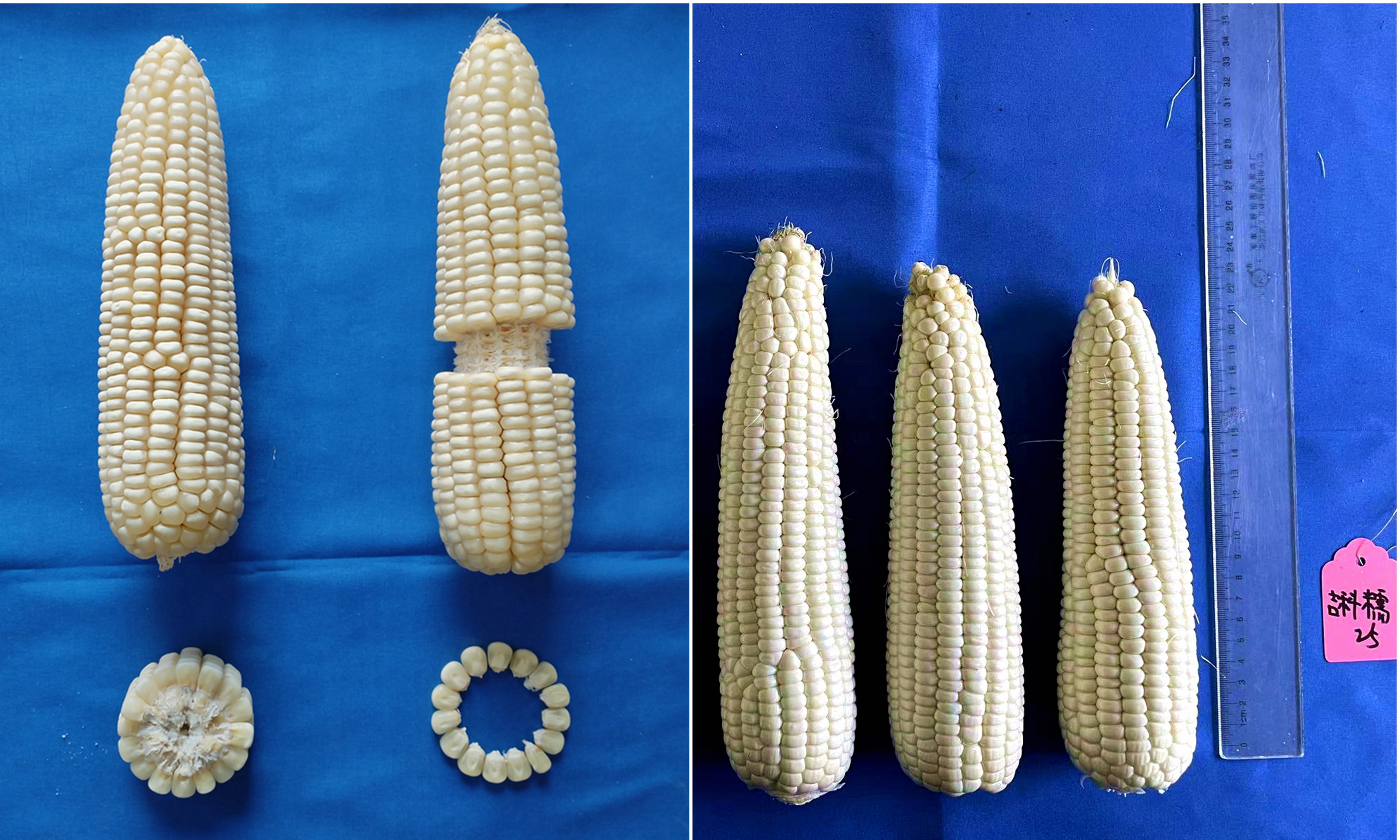 吉科糯25是我校玉米遗传育种团队瞄准市场需求,以“优质、高效”为目标,历经多年科技攻关选育而成的重要玉米新品种。其最显著的特点和核心竞争力在于实现了“甜味糯”的完美融合。该品种籽粒白色、排列整齐,蒸煮后不回生、口感软糯香甜,兼具了传统糯米的极致糯性与恰到好处的清甜风味,打破了消费者对糯玉米“只糯不甜”或“只甜不糯”的传统认知,风味独特,品尝后齿颊留香,市场前景十分广阔。除了优秀的食味品质,吉科糯25在农艺性状方面同样表现优异。该品种具有适应性广、抗逆性强、产量稳定、商品穗率高等特点,适宜在我国多个主要玉米种植区推广种植。其良好的综合性能不仅能够保障种植户的收益,也能为下游加工企业和终端消费者提供稳定、高品质的原料与产品。