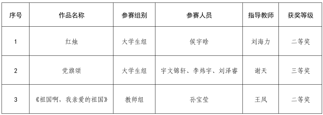 近日,吉林省教育厅主办的第七届中华经典诵写讲大赛“诵读中国”经典诵读大赛获奖名单正式公布。我校师生凭借扎实的语言功底和出色的艺术表现力,在比赛中脱颖而出,获二等奖2项、三等奖1项,展现了学校在中华优秀传统文化传承与创新中的卓越成果。