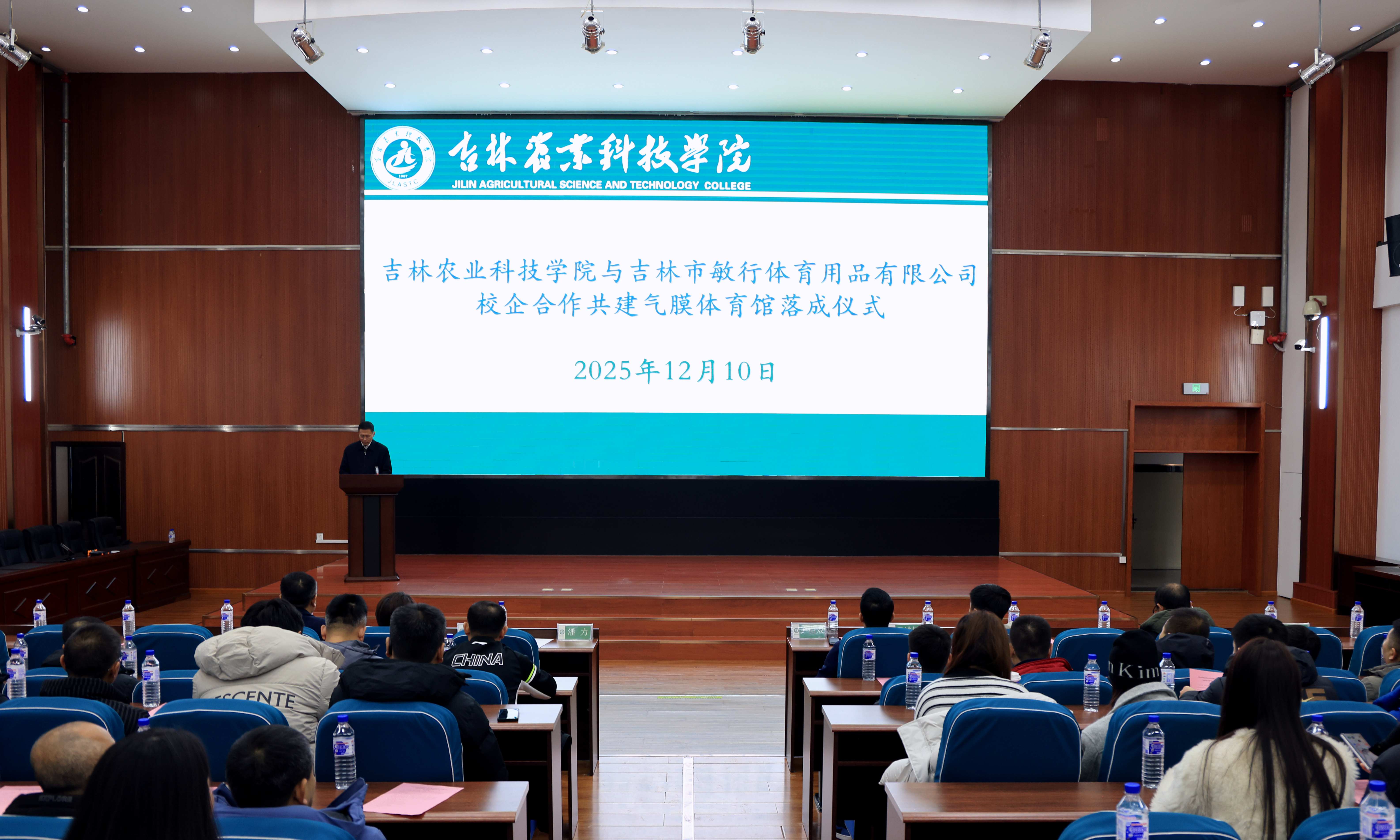 12月10日上午,我校与吉林市敏行体育用品有限公司共建气膜体育馆落成仪式在九站校区图书馆报告厅举行。校长尹柏双、副校长潘力、副校长赵悦,杰出校友、吉林市敏行体育用品有限公司代表于洪敏等师生、校友代表齐聚现场。仪式由潘力主持。