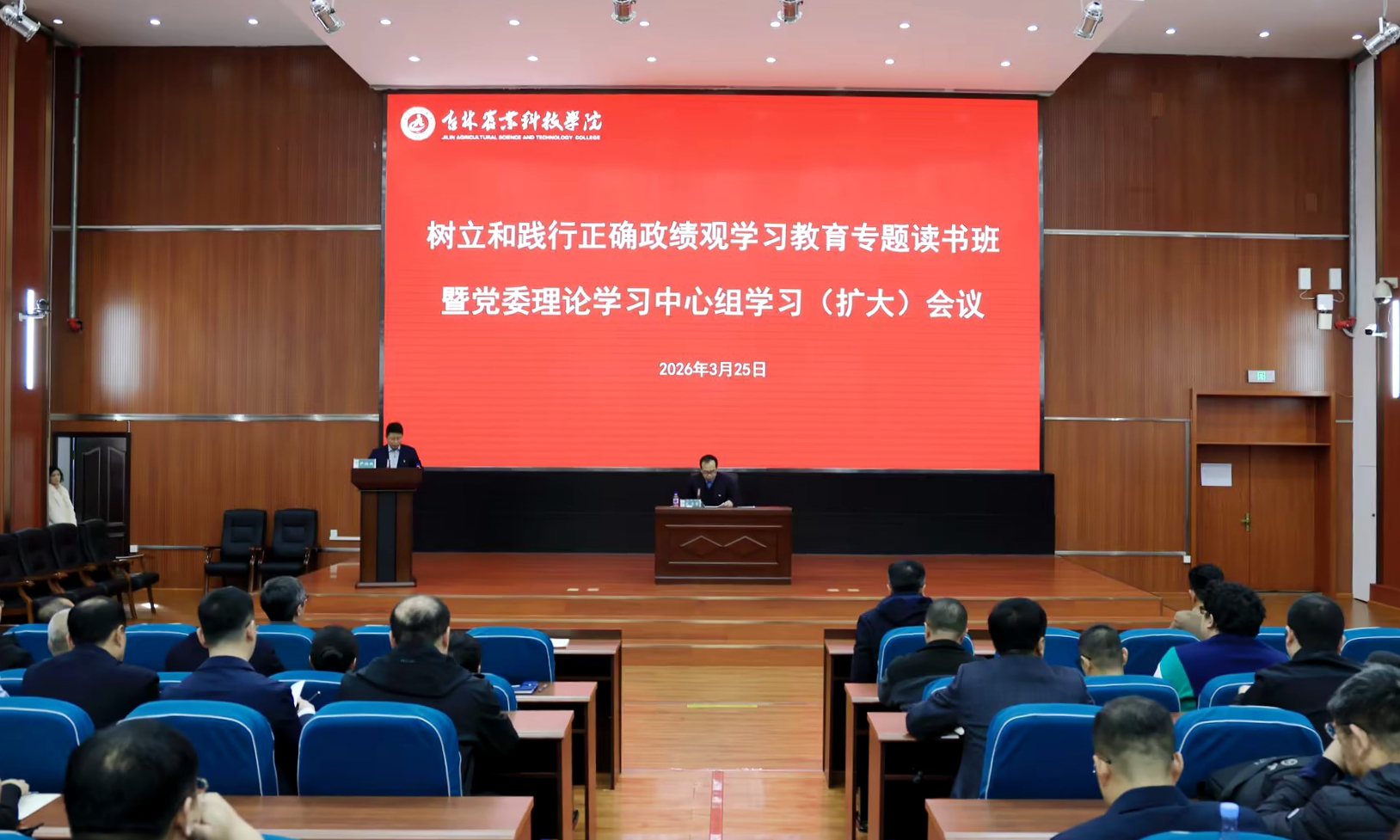 3月25日,学校召开树立和践行正确政绩观学习教育专题读书班暨党委理论学习中心组学习(扩大)会议。学校党委书记毛彦军作专题辅导报告,党委副书记、校长尹柏双主持会议。