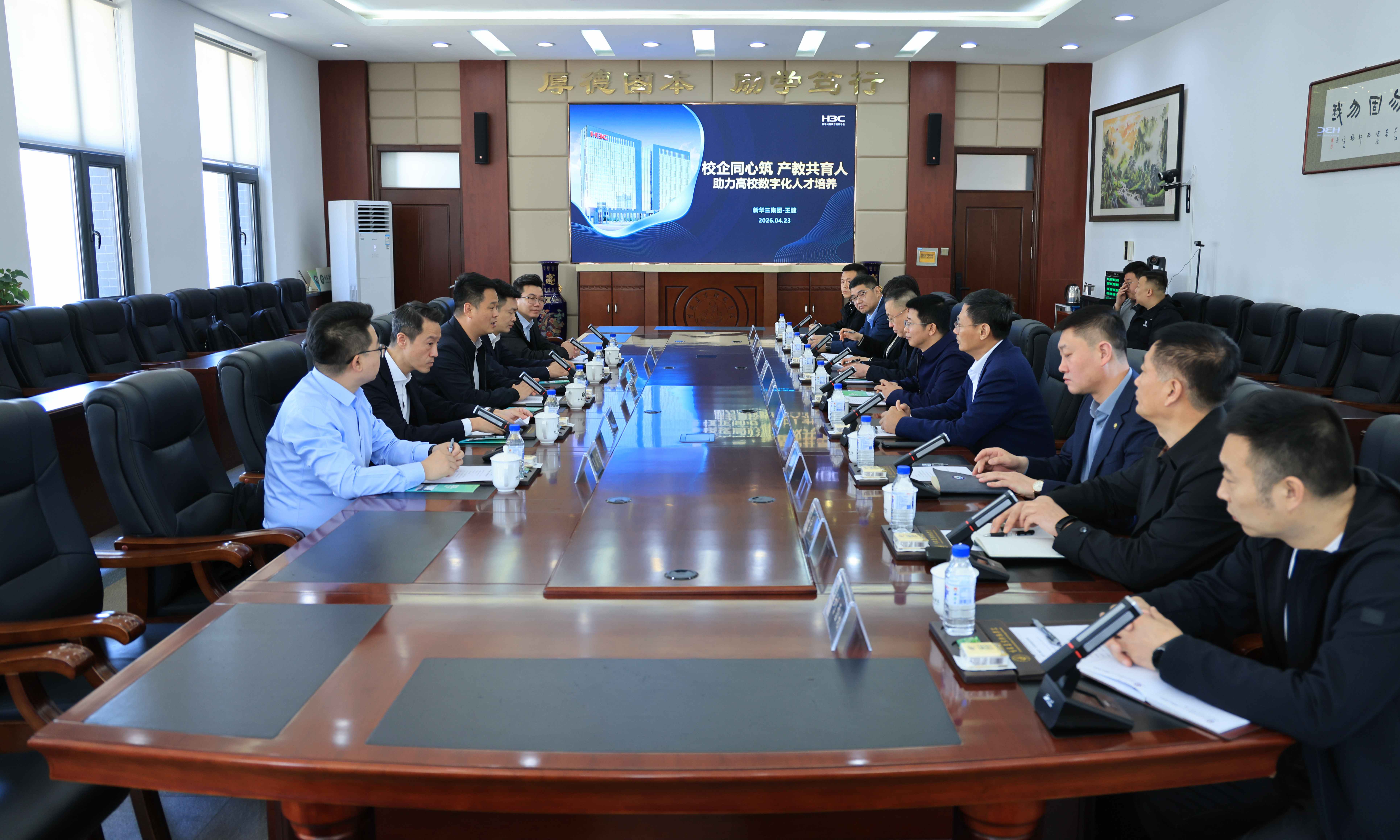 座谈中,新华三集团代表结合企业发展优势、核心业务布局,重点介绍了集团在教育数字化领域的技术研发成果、行业应用实践及校企合作经典案例,明确表达了与学校深化长期稳定合作、实现资源互补、互利共赢的美好意愿。