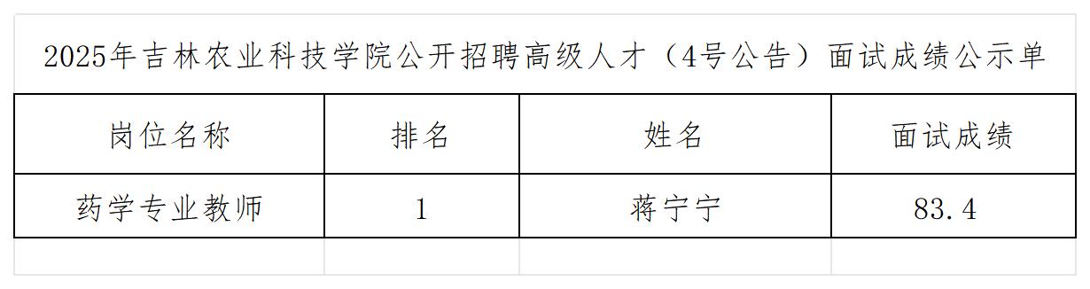 2025年吉林农业科技学院公开招聘高级人才(4号公告)面试成绩公示单