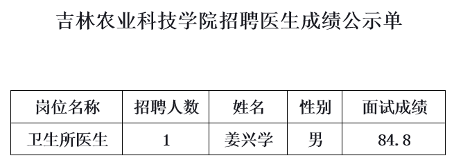 吉林农业科技学院招聘医生成绩公示单