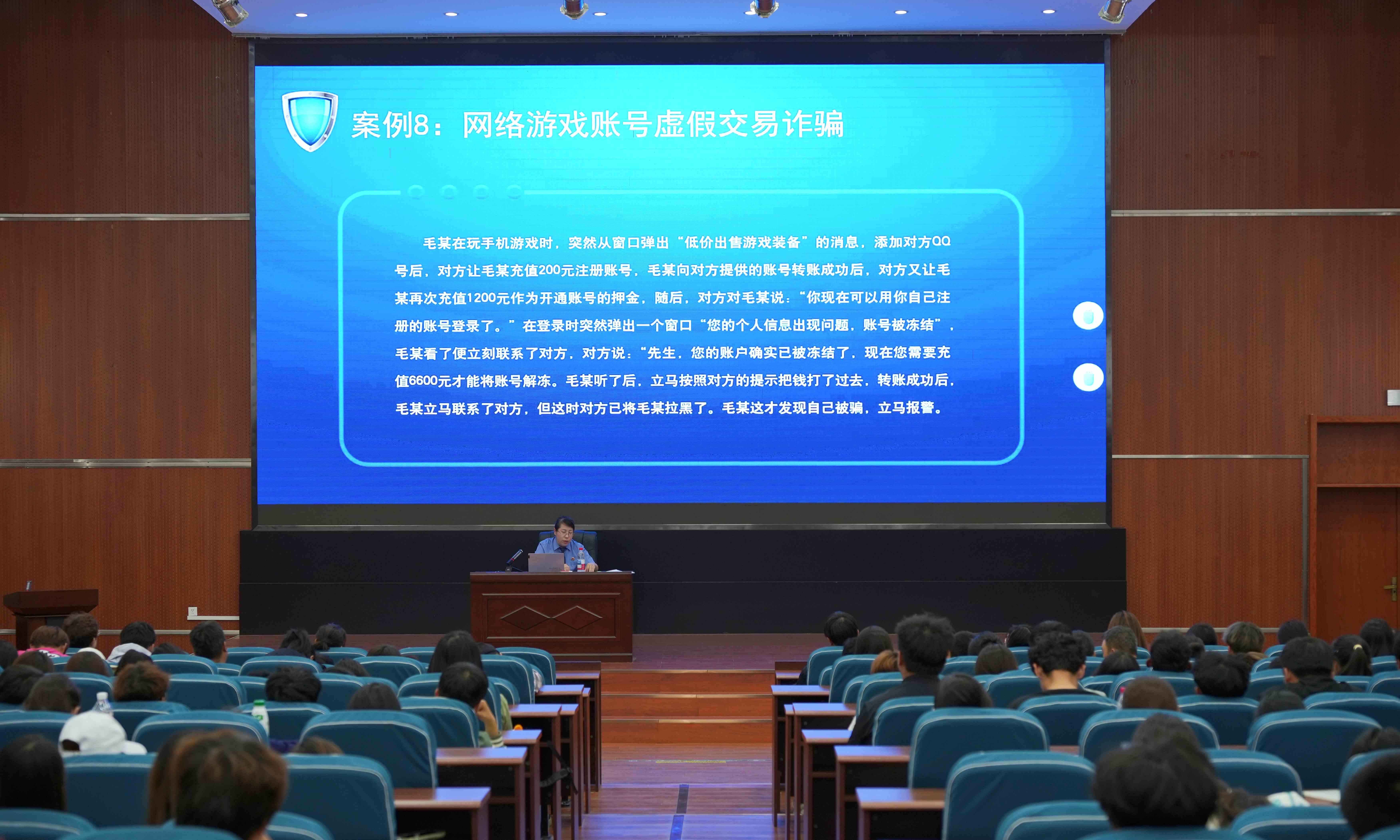 讲座现场,检察官以真实案例为切入点,结合高校学生易遭遇的诈骗场景,系统拆解电信网络诈骗常见诈骗类型的作案手法,用身边事警示身边人,让新生直观感受诈骗风险。