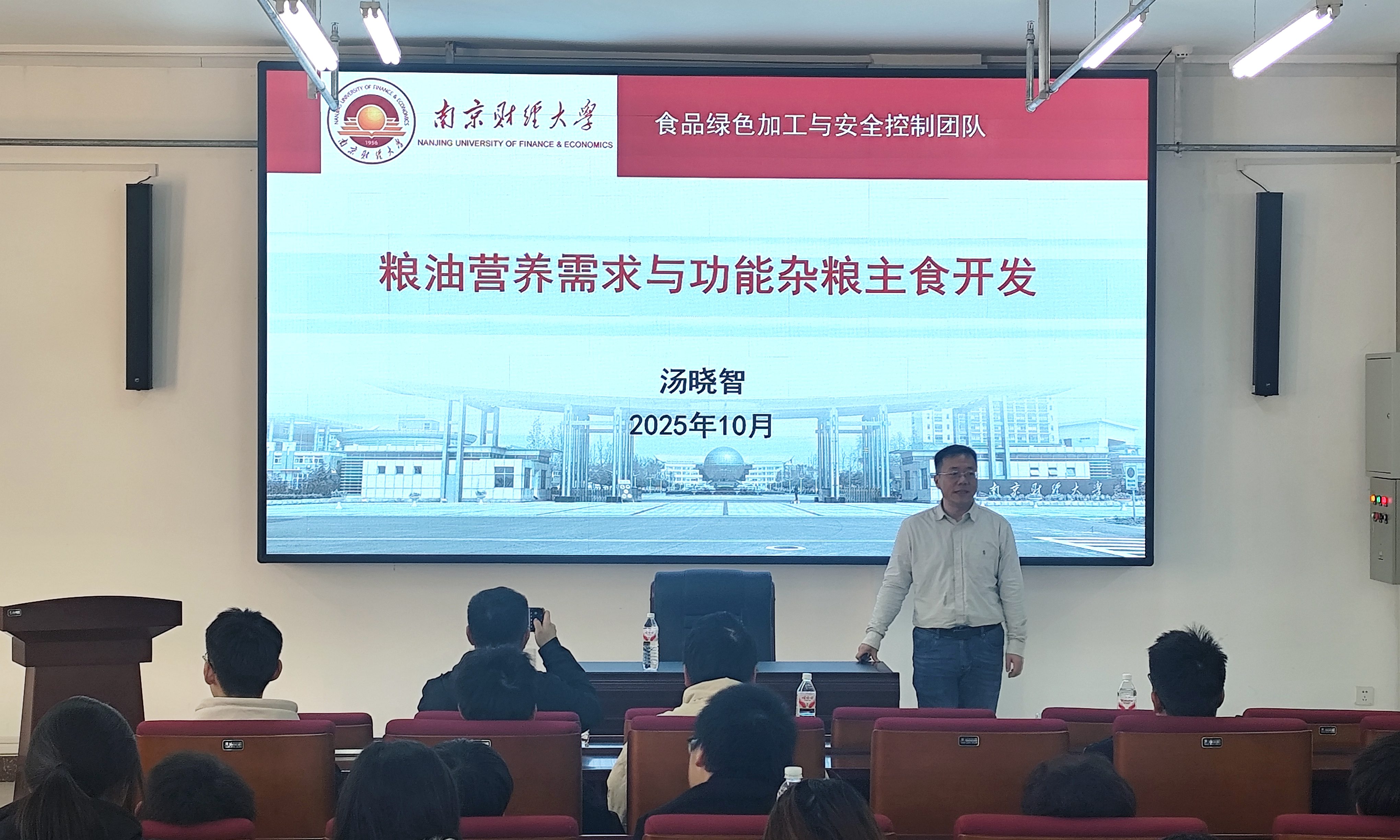 11月13日下午,食品科学与营养工程学院在第三报告厅举办学术报告,南京财经大学食品科学与工程学院教授汤晓智受邀作题为《粮油营养需求与功能杂粮主食开发》的报告。吉林老爷岭农业集团董事长冯其永莅临参会。学院全体教师及40余名学生代表共同参与,报告会由副院长刘超主持。
