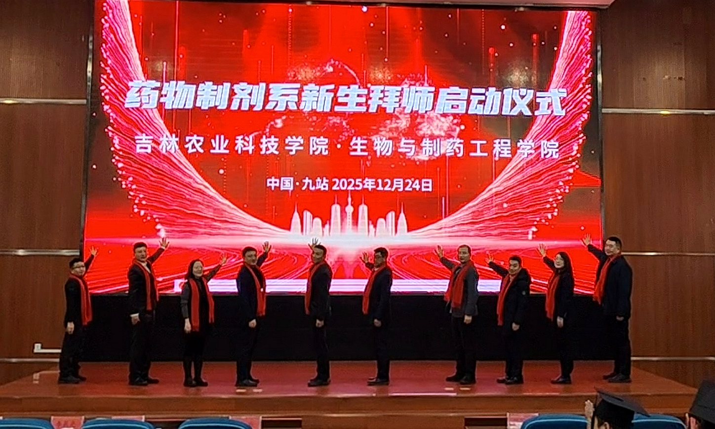 12月24日上午,生物与制药工程学院药物制剂系举行2025级新生拜师仪式。学校教务处长胡宇祥、教发中心主任靳敏平、学工处副处长张婧应邀出席活动,学院领导班子、全体教师与2025级新生共同参加活动。