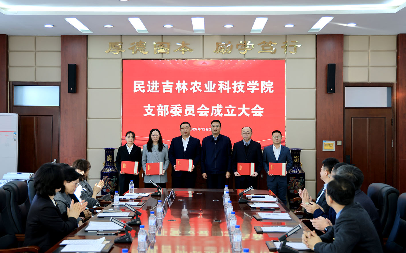2025年12月29日下午,中国民主促进会吉林农业科技学院支部委员会成立大会在学校务本楼第二会议室召开。吉林省政协副主席、民进吉林省委会主委蔡国伟,吉林市人民政府一级巡视员、民进吉林市委会主委王石红,民进吉林省委会秘书长兼组织部部长吴明宇,学校党委书记毛彦军、校长尹柏双等出席会议。市委统战部领导、学校党政领导、民进各基层组织代表及支部全体会员参加会议。大会由民进吉林市委会专职副主委任福祥主持。