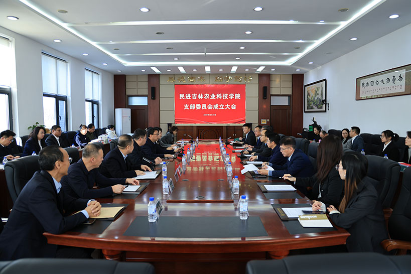 民进吉林市委会组织处处长张映光宣读成立决定。新当选支部主委刘博宇作表态发言。民盟吉林农业科技学院委员会主委李龙、民进北华大学委员会主委曲靖野分别代表兄弟党派和民进兄弟组织致贺词。