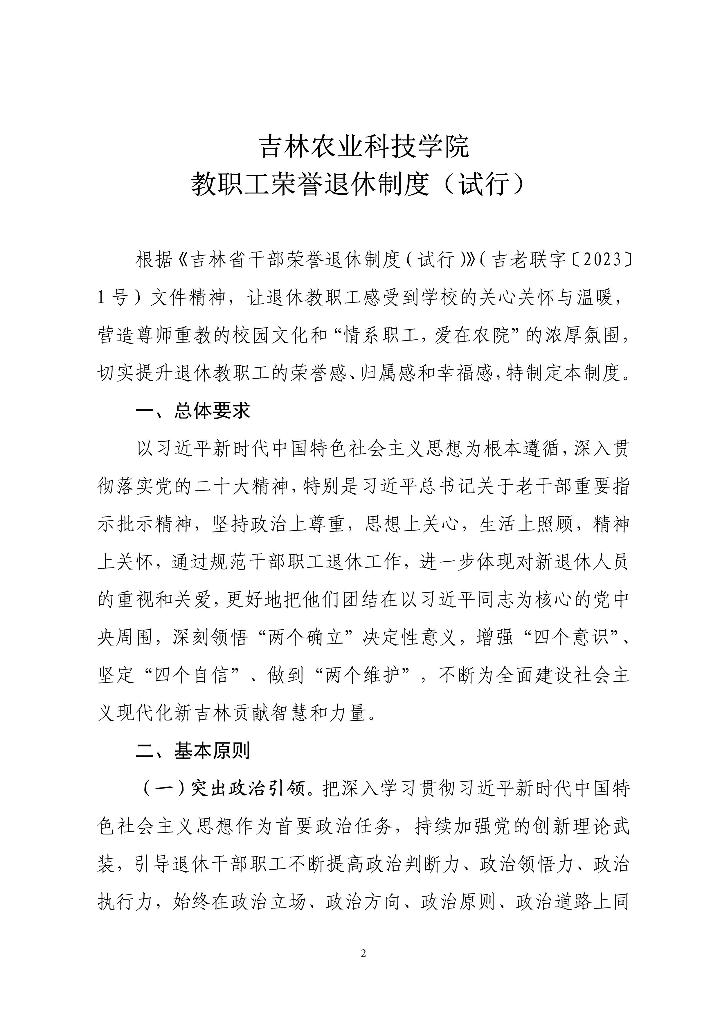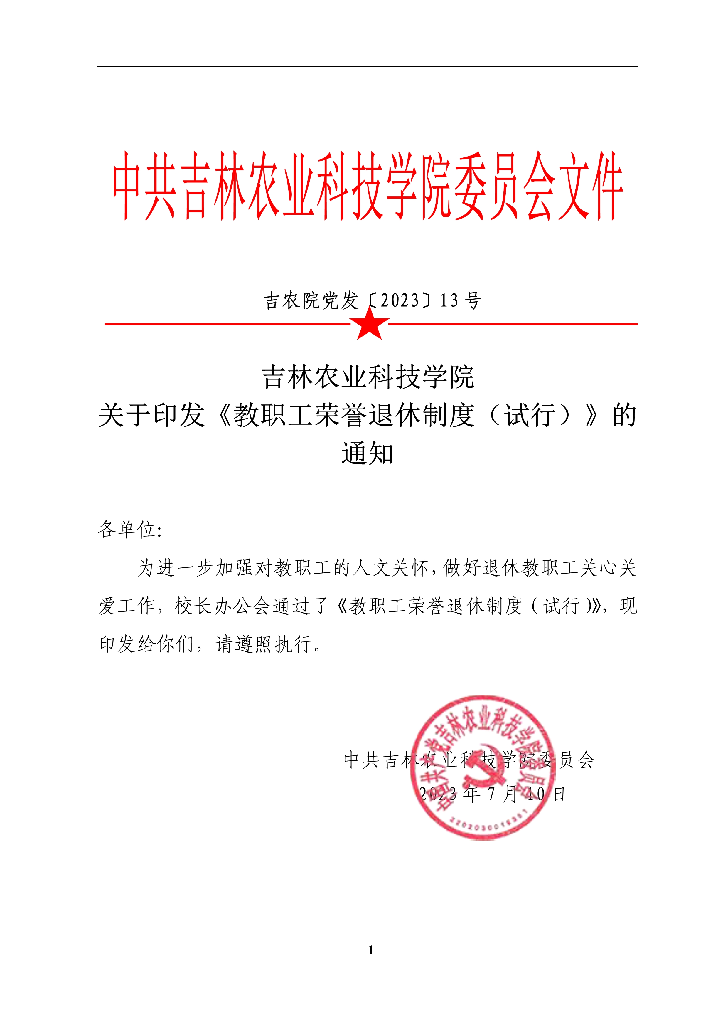 吉林农业科技学院关于印发《教职工荣誉退休制度(试行)》的通知